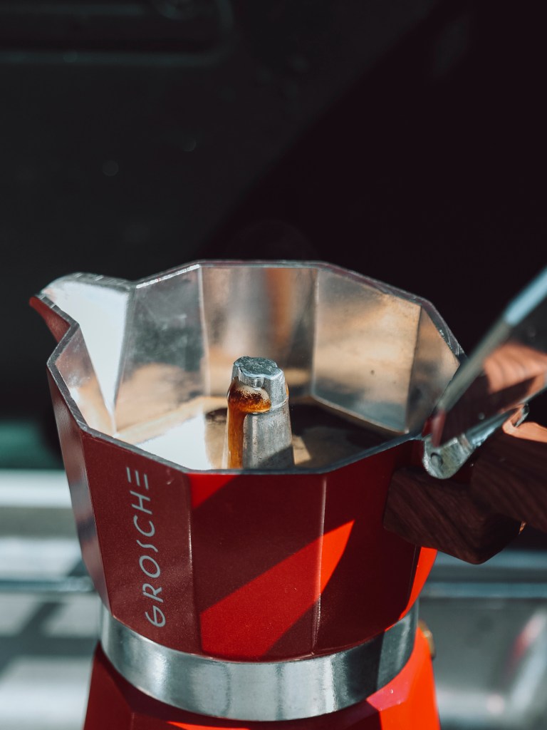 Eran las 6:45 de la mañana y presenciamos un amanecer de espectáculo en este hermoso martes, lucía un azul tenue mezclado al amarillo del sol. Estábamos en el medio de la nada. Solo escuchábamos los pajaritos y los niños levantándose. Inmediatamente fuimos a preparar nuestro café. Utilizamos una greca roja, que me recordó a mi isla querida —tus raíces las llevas a donde quiera que vayas— y la manera bastante común de hacer café puertorriqueño. Hacíamos el café por tandas porque la greca era pequeña y habíamos 4 amantes del café, esperando ansiosos ese primer sorbo en medio del frío mañanero. Nos servimos el preciado líquido color marrón oscuro en nuestros vasos y aquí fue donde realmente comenzó el día. Seguido a esto, preparamos el desayuno para todos. Un momento de caos maravilloso, de esos que vale la pena vivir muchas veces en la vida, aunque te sientas casi al borde de la locura.