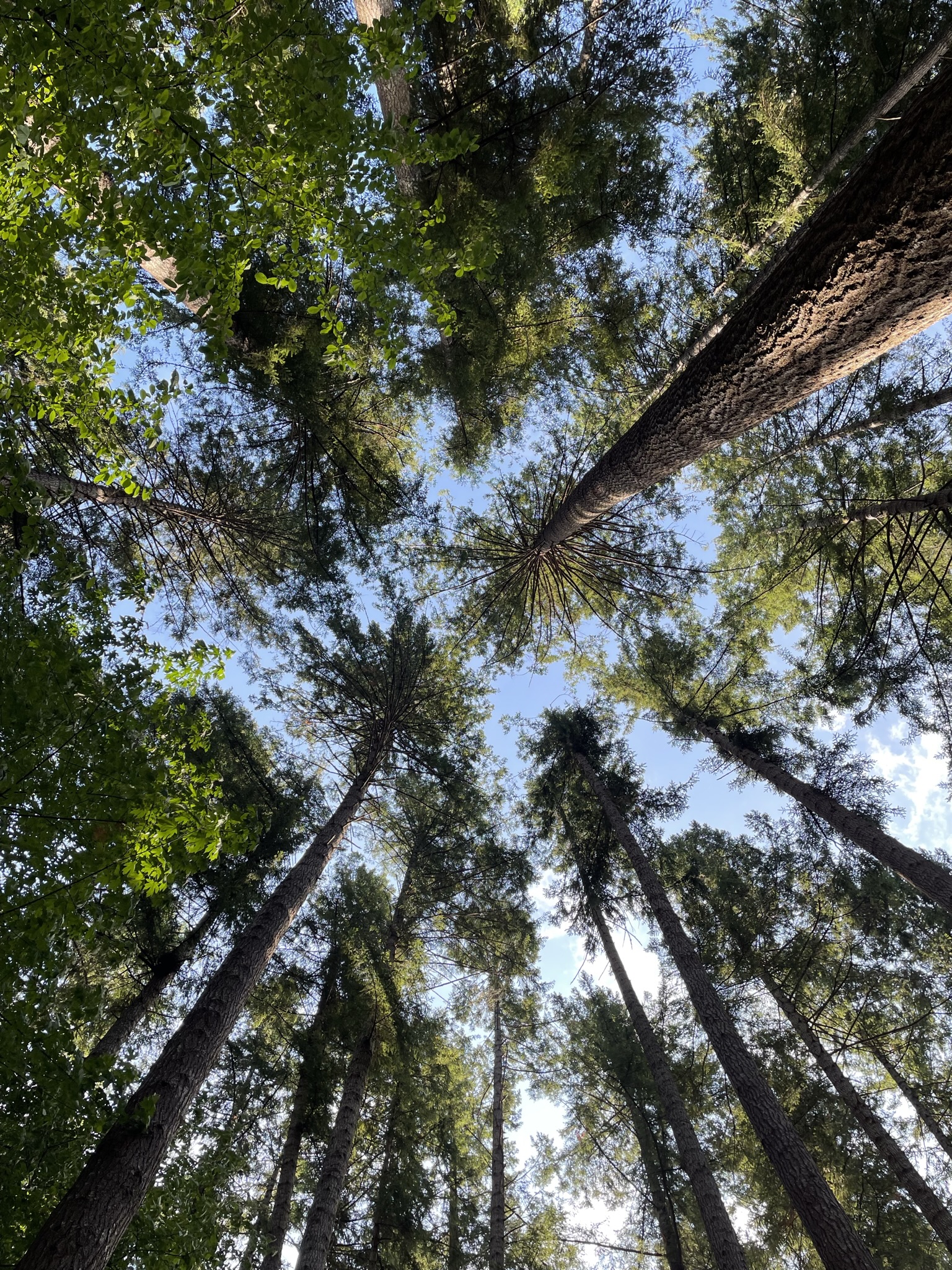Llegamos a la entrada de este parque estatal, nos recibió el guardabosques. Muy amablemente nos tomó la información y nos brindó las instrucciones para llegar hasta nuestro lugar para acampar #184, también nos dejó saber que estábamos bajo advertencia de fuegos forestales y que las fogatas utilizando madera estaban prohibidas en esta temporada. Nos regaló un mapa del lugar y finalmente entre muchos pinos gigantescos y mucha vegetación nos dirigimos al ‘campsite’.