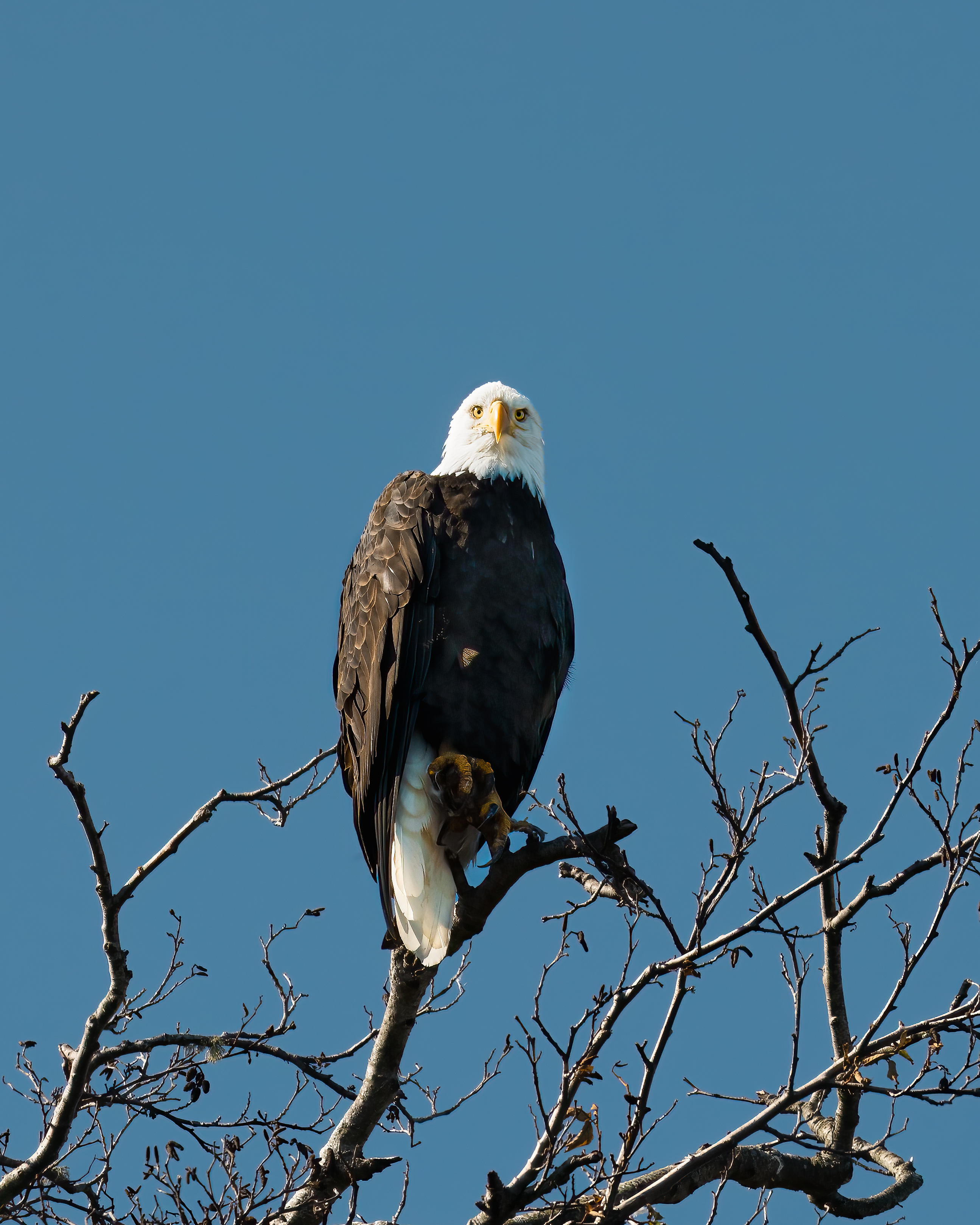 Inmediatamente nos estacionamos (para este lugar también se requiere tener el Discover Pass), miramos un ave grandísima parada en la cima de un árbol y pensamos que podía ser un Águila Calva porque más o menos ya reconocemos el comportamiento de ellas. Ariel sacó los binoculares y me dijo «Betsy, efectivamente es un Águila Calva», y sin más comencé a caminar para acercarme a ella. Para poder llegar a verla de cerca bajamos por unas escaleras que te llevan a la orilla del mar, el agua era cristalina y tenía un brillo muy especial. Enseguida cambié el lente de la cámara para lograr la foto que añoraba de esta majestuosa ave y logré acercarme con mucho respeto y cuidado. Tengo que decirte que me dio lo mejor de ella, miró fijamente al lente, algo que brinda impacto y es importante en la fotografía de animales. No lo podía creer, sentí su energía llena de fuerza con su mirada, fueron segundos pero un momento eterno para esta curiosa de la vida.