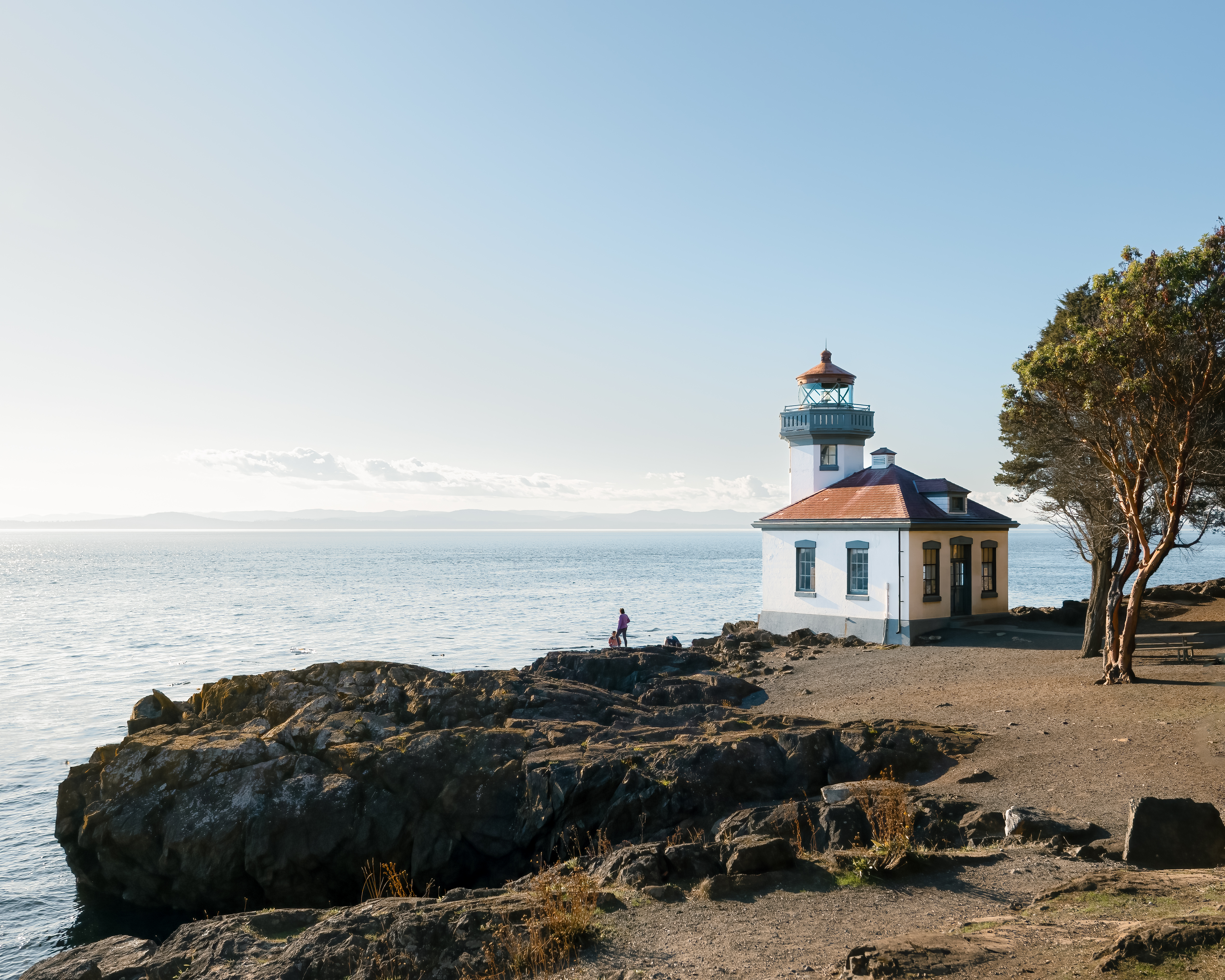 El pueblo de Friday Harbor tiene de todo tipo de tiendas locales con productos de gran calidad, hechos por artistas de la zona y muy bien curados. Tan pronto terminamos aquí con todo lo que íbamos a hacer, nos fuimos directamente a visitar el Lime Kiln Point State Park, que es donde queda ubicado uno de los faros de esta isla y donde también ocurren avistamientos de ballenas. Para este parque necesitas el Discover Pass, que puedes comprarlo para 1 día o 1 año.