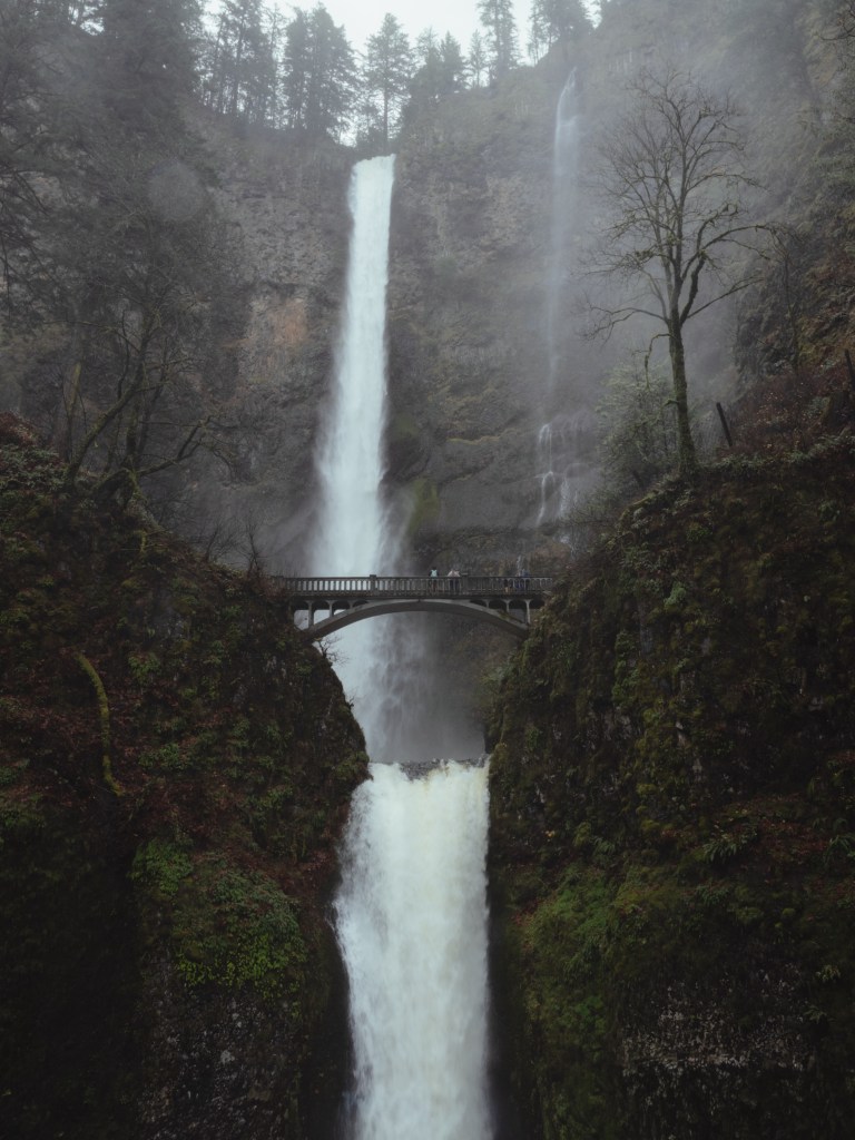 Una vez entramos a Oregon bordeamos el Columbia River hacia el noreste de Oregon y comenzó «la película» que regala este lugar. Este estado –en mi opinión, es 3 películas en una: Avatar, Pirates of the Caribbean y Twilight. Su mood es todo esto. La neblina, el frío, las cascadas, sus rocas, sus aguas, hacen de Oregon un estado surreal, esta siempre ha sido la palabra con la que le logro describirle.